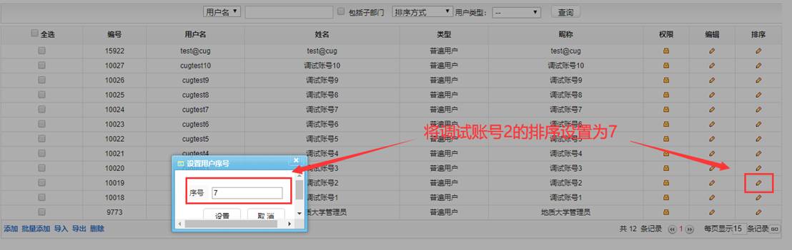 按钮,弹出设置用户序号对话框,可以修改用户序号,序号越大,此用户在客户端通讯录的位置越靠前。