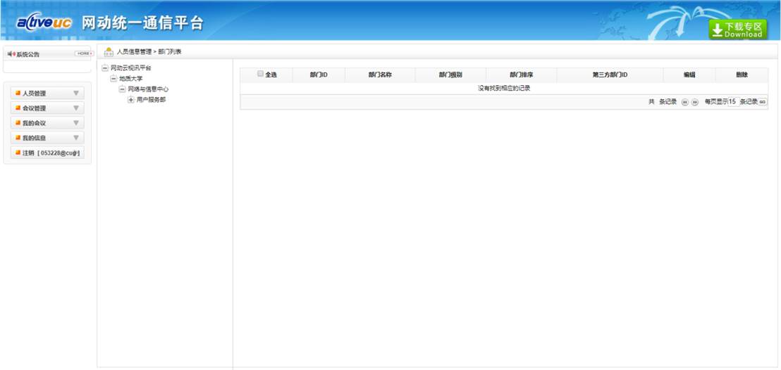 管理员登陆后,可以对全体员工与所有部门进行管理,可以添加或删除某部门,添加或者批量添加部门用户。