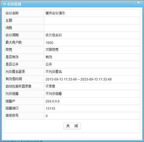 【会议密码】:设置进入会议室的密码,配合匿名登录使用设置后只有同时知道会议号和密码的未注册用户和已注册但未授权用户可以进入会议室。